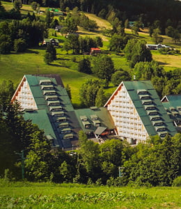 Hotel znajduje się na wzniesieniu nad Zaporą Łabską na samym początku Szpindlerowego Młyna. Można do niego dojechać drogą bezproblemowo dostępną dla samochodów i autobusów również w niekorzystnych warunkach atmosferycznych. Nie musisz zatem obawiać się, że zgubisz się. Zaraz obok hotelu znajduje się stok Labská, dzięki czemu nie trzeba nigdzie dojeżdżać samochodem ani skibusem. W lecie możesz wykorzystać rower lub kijki, by za kilka chwil znaleźć się w lesie, należącym do Karkonoskiego Parku Narodowego.